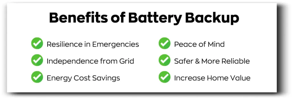Los sistemas de respaldo de la batería ofrecen una amplia gama de beneficios en términos de independencia de energía, ahorro de costos e impacto ambiental. Algunos de estos beneficios son obvios, como ser seguros durante los cortes de energía, pero otros son menos esperados, como aumentar el valor de la vivienda y aprovechar al máximo los modelos de precios de servicios públicos.