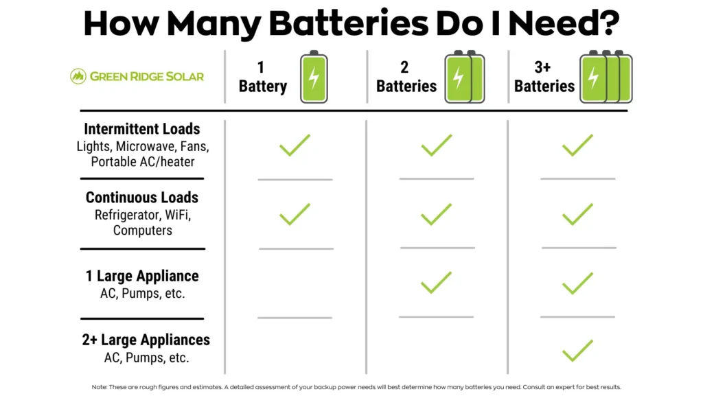 Póngase en contacto con Green Ridge Solar para ver cuántas baterías necesita. su batería y solares solares pueden responder todas sus preguntas y proporcionar un estopo libre libre. Cita